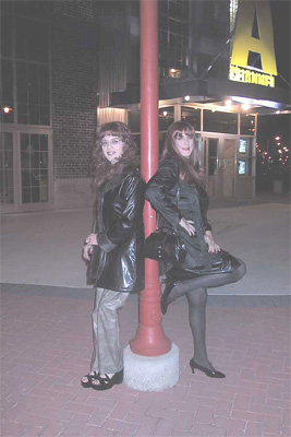 On the evening of Saturday, October 13, 2001, I was going to meet with Shandi and Vanessa and go to Club 200 for the "Miss Club 200 Pageant". For this evening, I wore a wine T-shirt and a knee length black skirt with a front slit, and sensible pumps. Since I was ready way too early:-), I needed something to do that would help pleasantly pass the time. And I can't think of a better way to pass time that doing it as a girl! So, just after dark, I decided to go for a walk at the Forks Market!